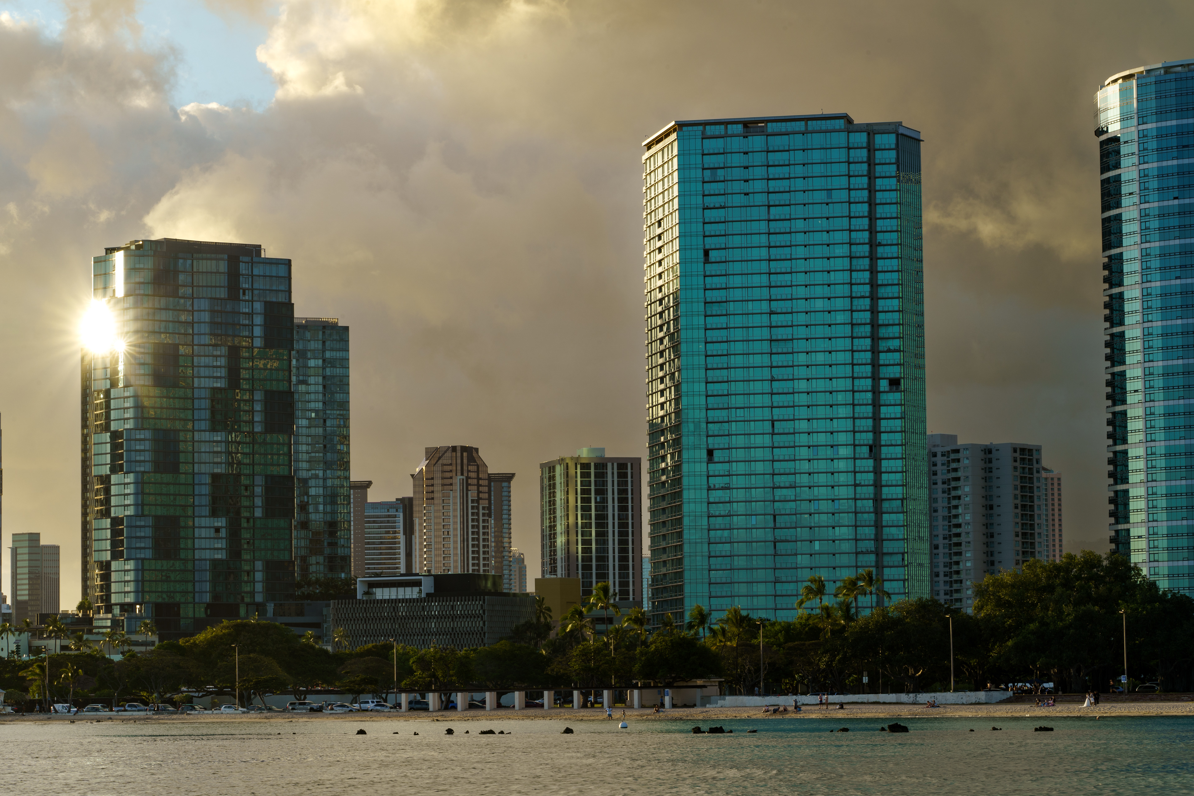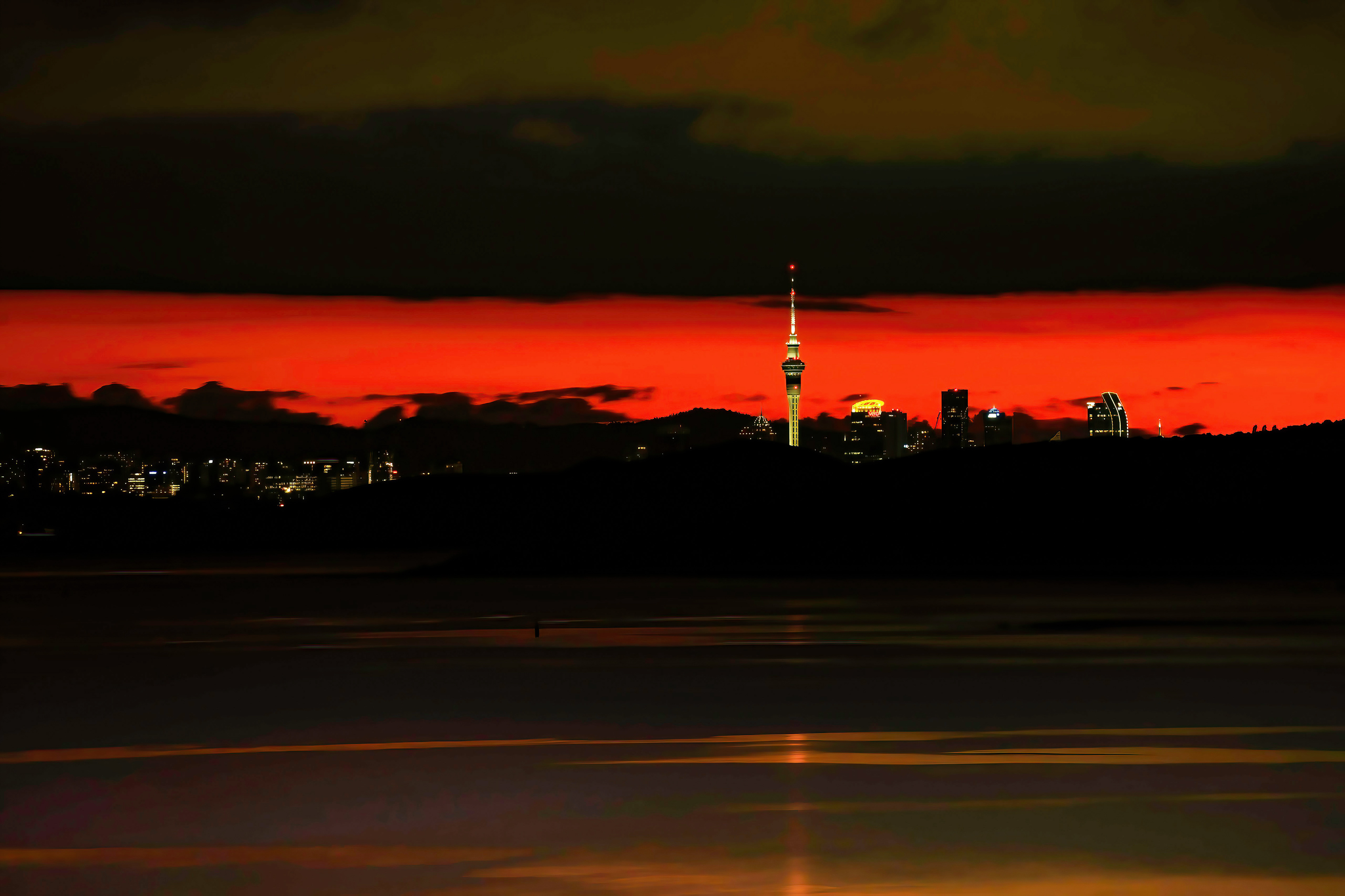 AUCKLAND CITY, SKY TOWER - Last sun looking from Waiheke Island